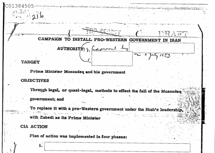 Parte de um documento da CIA que explica o plano que levou ao golpe de Estado Documentos da CIA que deixaram de ser secretos e