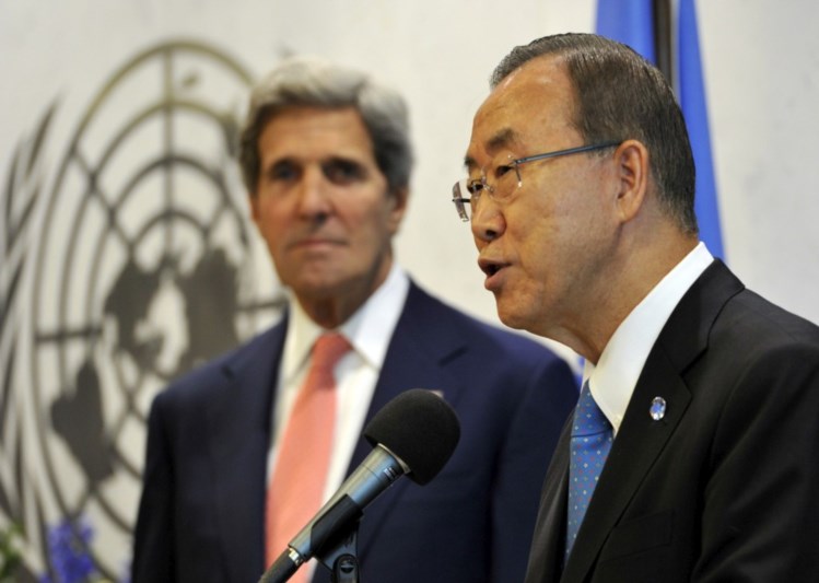 Dirigente das Nações Unidas e secretário de Estado norte-americano, John Kerry, concordam que “não há solução militar, só há solução política
