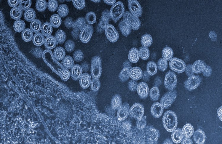 Vírus das aves H7N9 a saírem de uma célula
