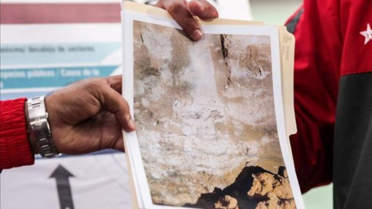 fotografias tiradas pelos operários à parede onde ocorreu a aparição.