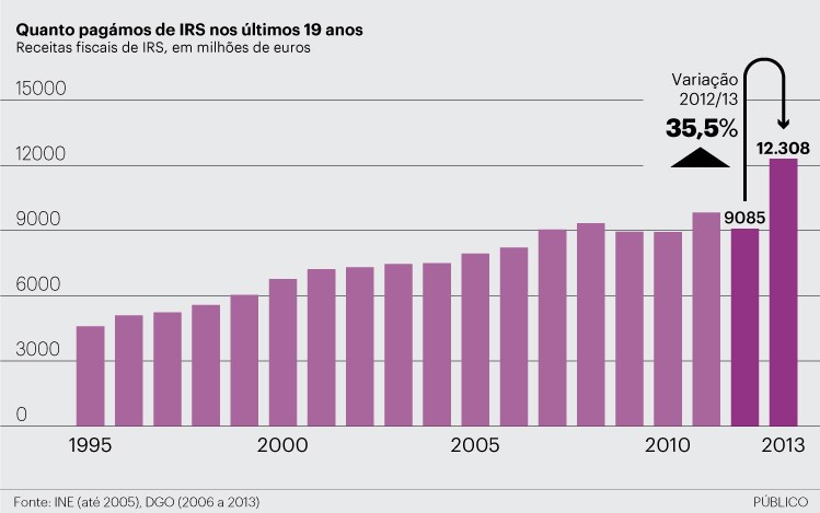 portuguesas pagassem em 2013 a maior factura de IRS de sempre: 12.308